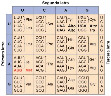 El conjunt complet de relacions entre els codons i els aminoàcids (o senyals d’acabament) es coneix com el codi genètic.