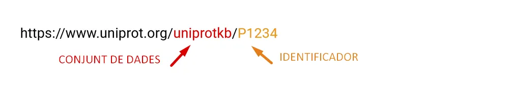 L’URL del resultat d’una consulta consta d’un nom de conjunt de dades (p. ex., uniprot, uniref, uniparc, taxonomia,…) i la consulta real.