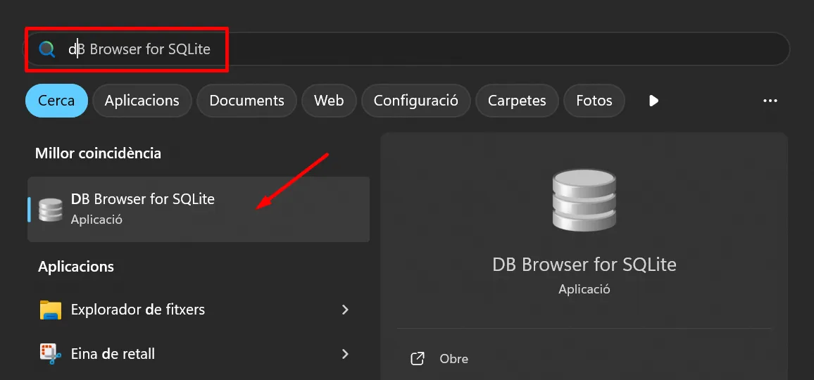 Per treballar amb Sqlite utilitzarem l’aplicació DB Browser for SQLite.