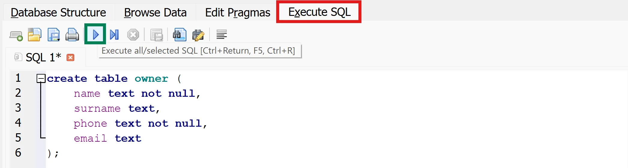 Tal com diu l’ajuda, pots executar la sentència SQL amb la combinació de tecles Ctrl + ⏎, o …