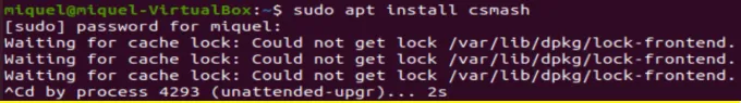 Waiting for cache lock: Could not get lock /var/lib/dpkg/lock-frontend. It is hWaiting for cache lock: Could not get lock /var/lib/dpkg/lock-frontend. It is hWaiting for cache lock: Could not get lock /var/lib/dpkg/lock-frontend. It is h^Cd by process 4293 (unattended-upgr)... 2s