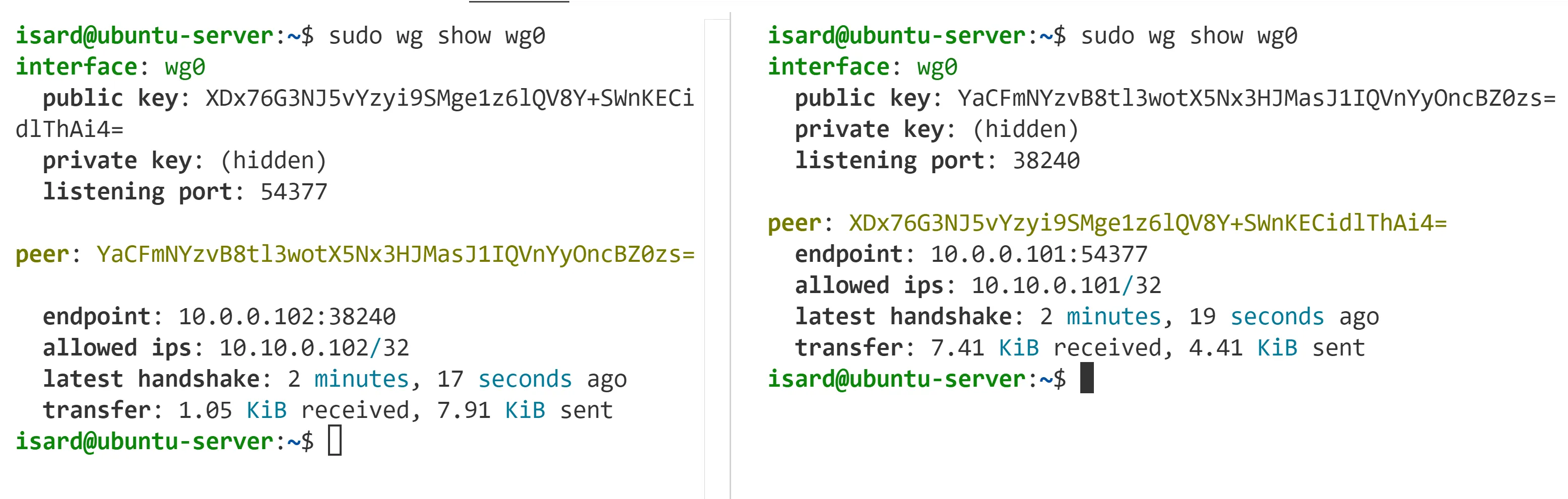 peer: XDx76G3NJ5vYzyi9SMge1z6lQV8Y+SWnKECidlThAi4= endpoint: 10.0.0.101:54377 allowed ips: 10.10.0.101/32 latest handshake: 18 seconds ago transfer: 1.39 KiB received, 124 B sentPerò com pots estar segur que el peer està ben configurat?