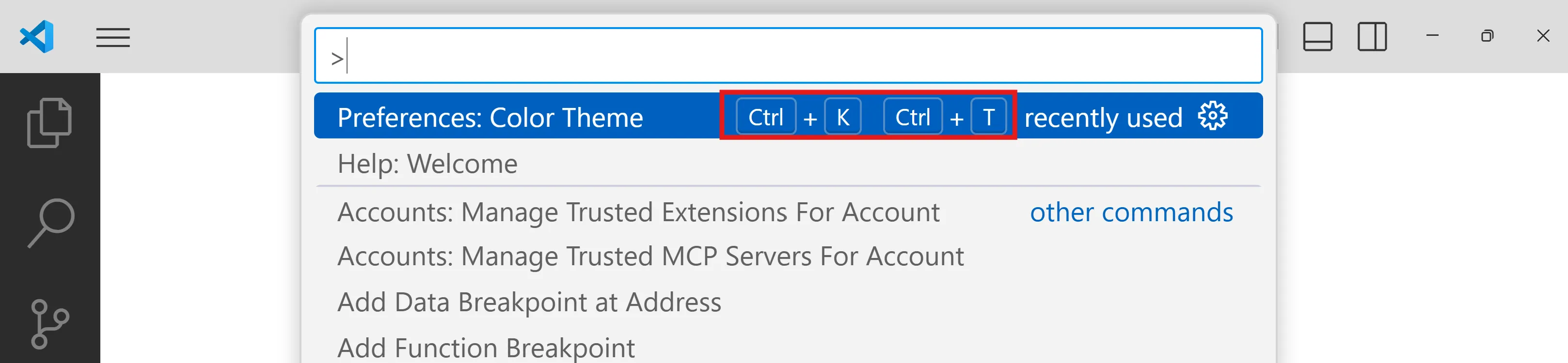 Visual Studio Code proporciona accés a totes les comandes disponibles a través de la Paleta de comandes, i moltes d’aquestes comandes no estan disponibles mitjançant menús o altres elements de la interfície. Des de la Paleta de comandes, pots executar ordres per dur a terme tasques de l’editor, a més de comandes d’extensions.