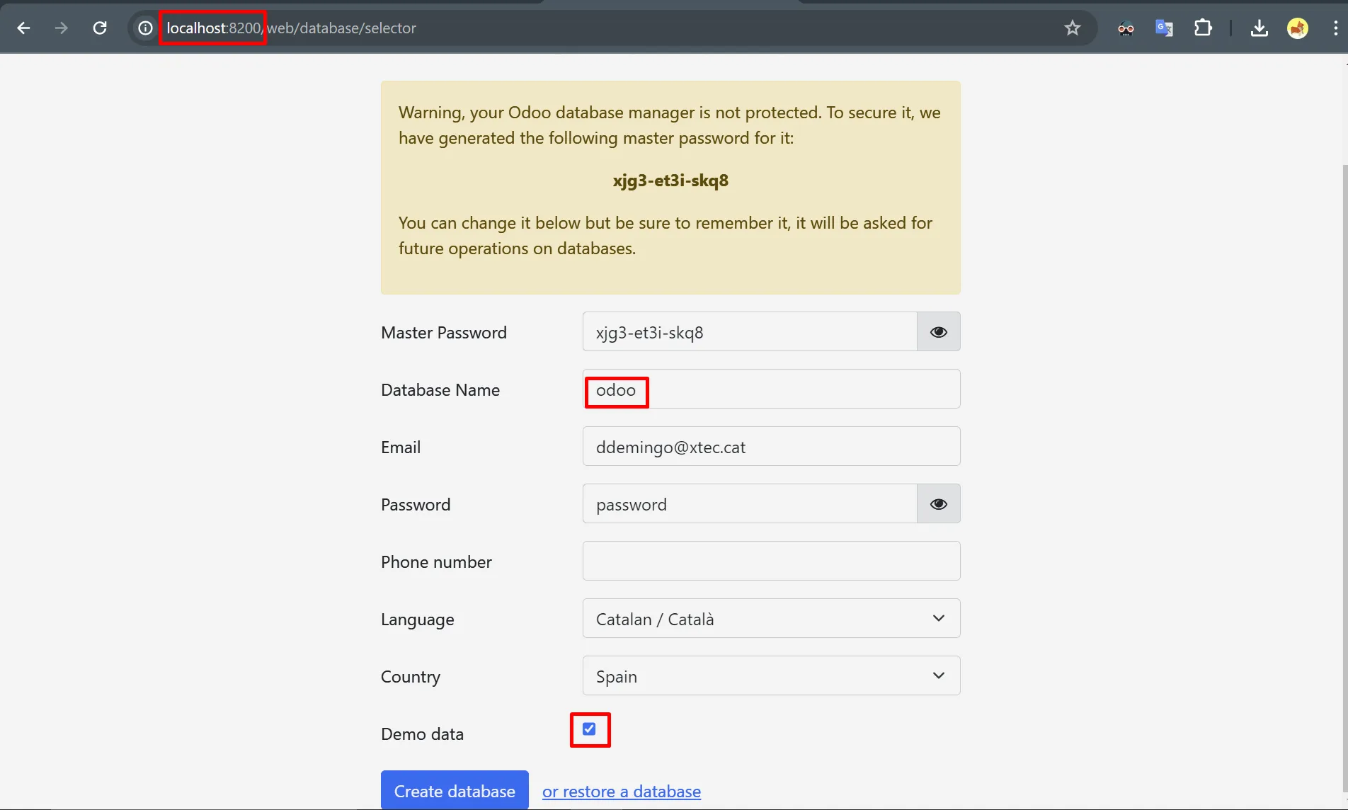 git clone https://gitlab.com/xtec/web/odoo.gitcd odoodocker-compose up -dA partir d’ara cada cop que arrenquis la màquina odoo arrencarà de manera automàtica.