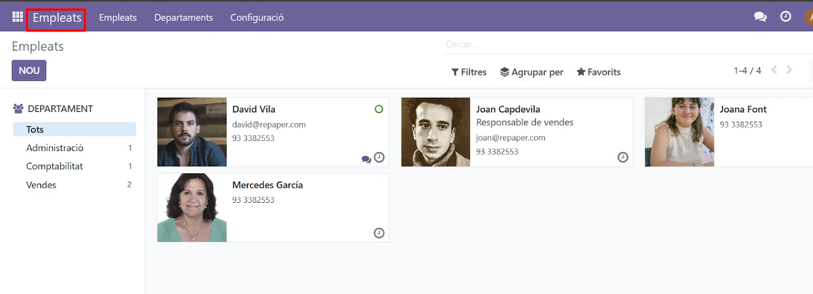 Activa la gestió d’empleats per poder accedir a les dades d’empleats: