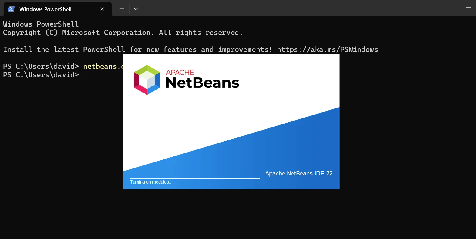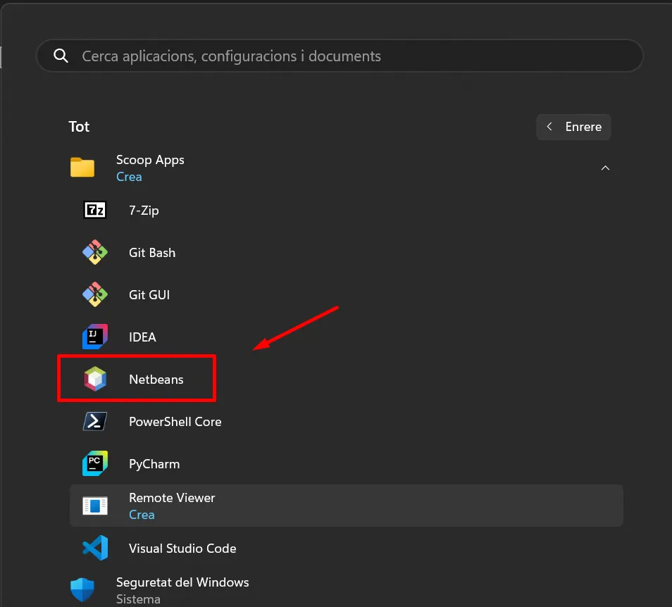 > scoop bucket add java> scoop install java/openjdk21Ja pots executar netbeans des la linia d’ordres: